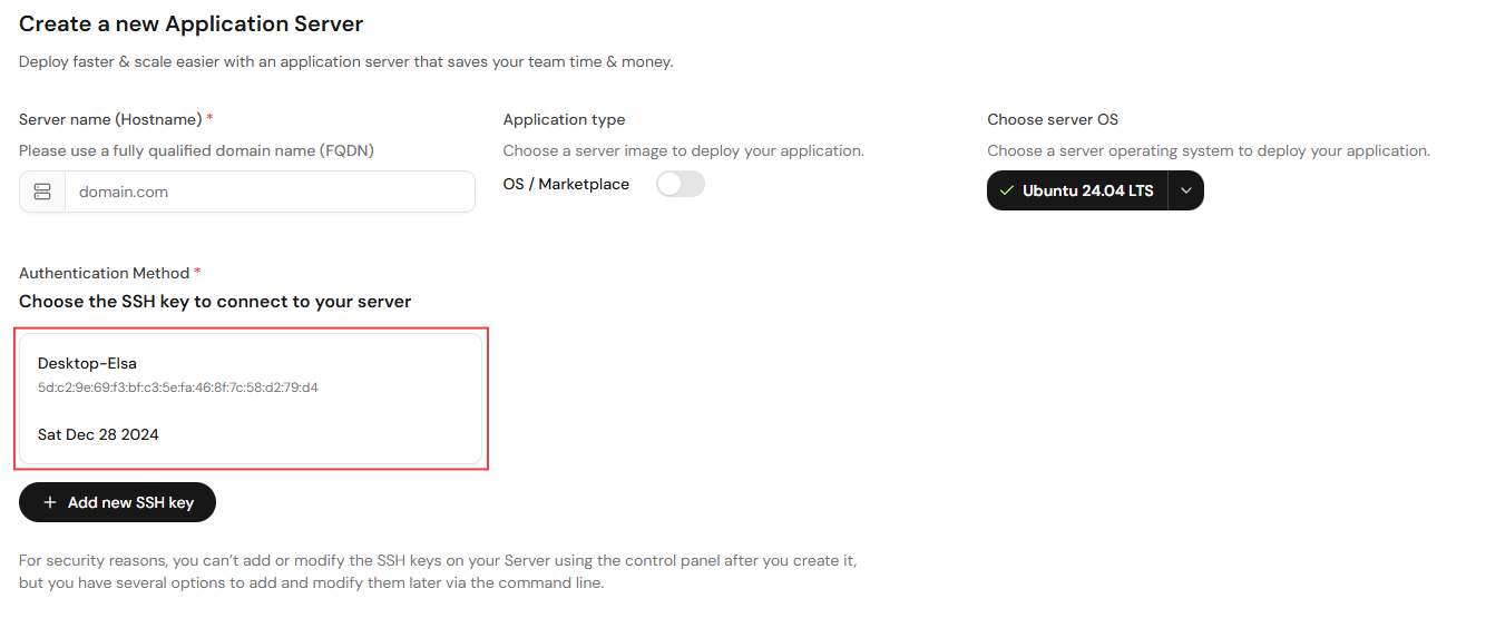 You can manage your Servers using password-based logins, but we strongly recommend using SSH key pairs instead. SSH keys are more secure than passwords and can help you log in without having to remember long passwords.
